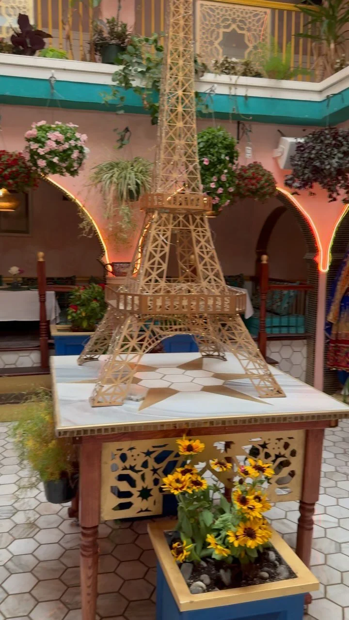 If the ambiance inside wasn’t enough, faced with the COVID-19 pandemic, Setaara accelerated plans to expand during this down time. Abdullah always wanted for there to be a semi-outdoor space at Setaara and he came up with a courtyard design remniscent of a historic Silk Road town. It initially opened as an outdoor courtyard however due to tremendous demand, he converted it to a glass domed garden area that is climate controlled year round with lush foliage, marble floors, and plush velvet furniture with a replica of the Eiffel Tower in the center. This multimillion dollar Eiffel Garden opened in Fall 2022.
